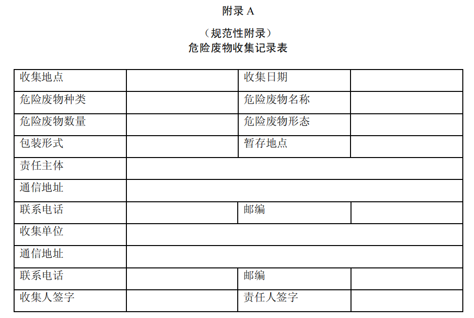 (4)危險廢物收集應參照本標準附錄A填寫記錄表,并將記錄表作為危險廢物管理的重要